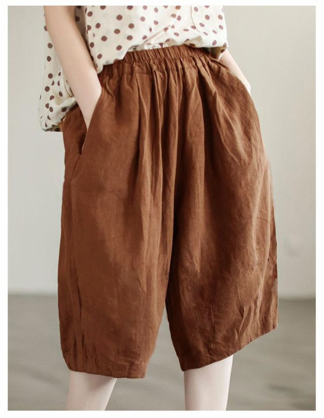 | 綿麻 ふんわりボリュームのあるワイドハーフパンツ | |