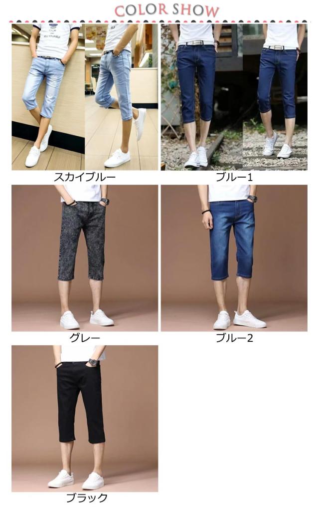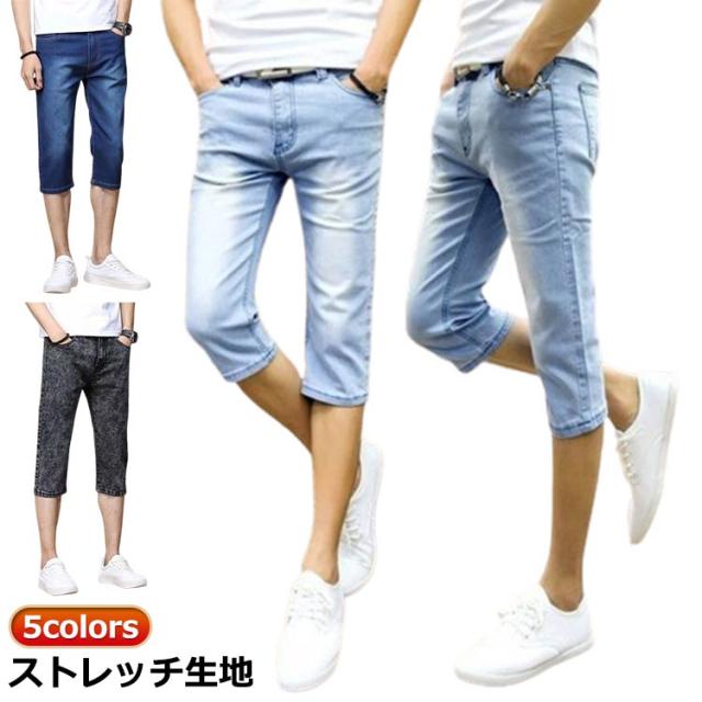 デニムパンツ ジーンズ クロップドパンツ アンクルパンツ 7分丈パンツ ひざ下 スキニー デニム パンツ メンズ 大きサイズ ストレッチ 薄手 涼しい 春 夏 秋 スキニーパンツ 送料無料