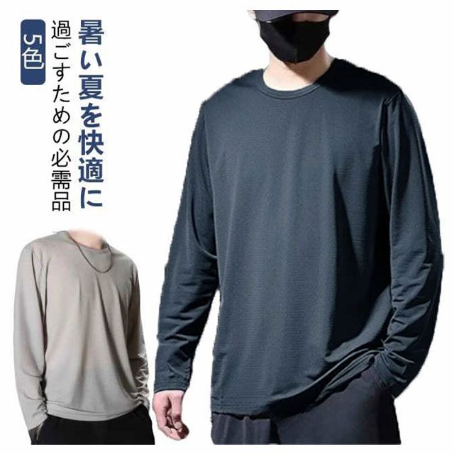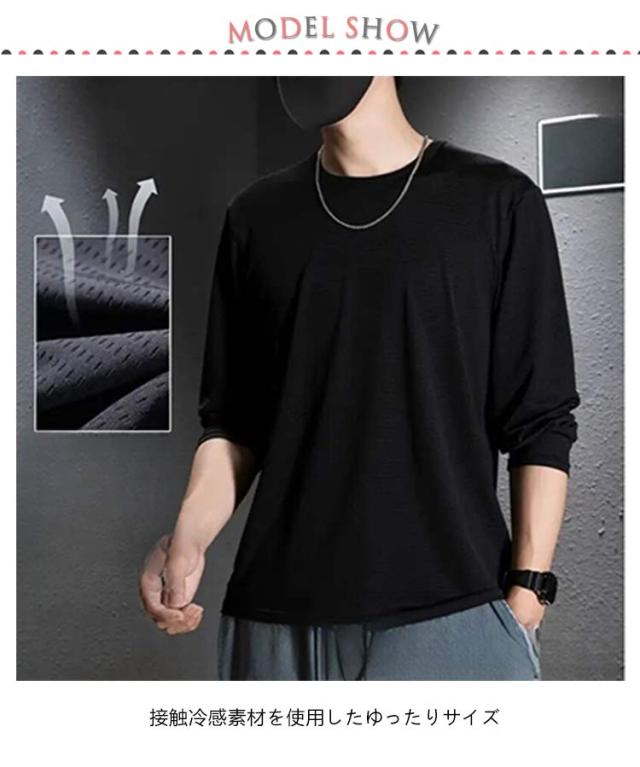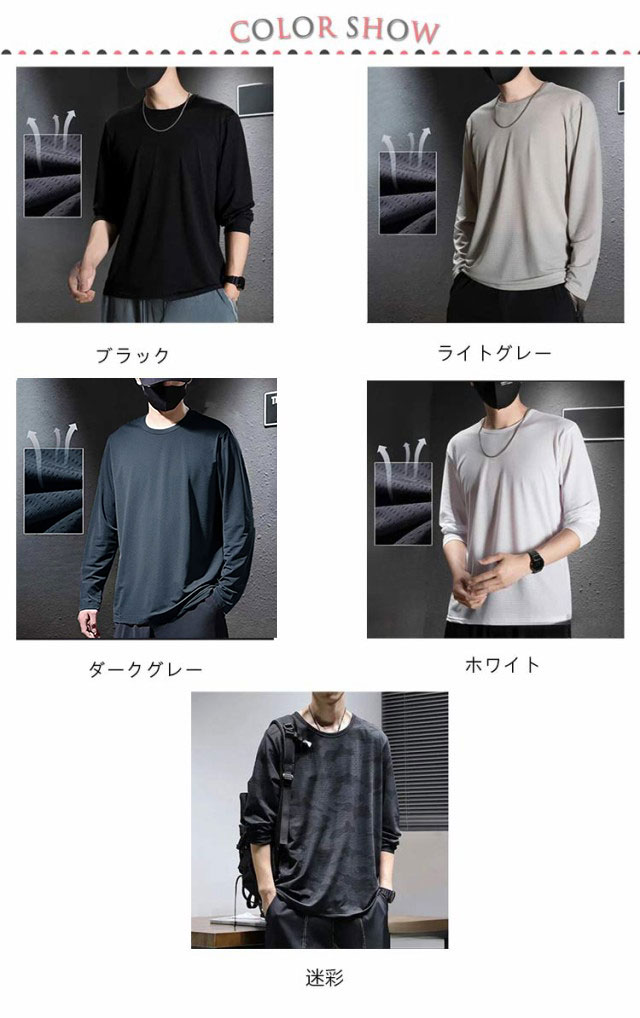 メッシュtシャツ ロングtシャツ 速乾 メンズ 大きいサイズ tシャツ スポーツ 長袖 夏 ロンT 涼しい 速乾 ラウンドネック 冷感 トップス 迷彩 速乾 通気 薄手 大きいサイズ ホワイト ブラック