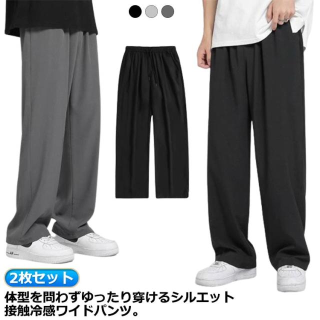 メンズ カジュアルパンツ アイスシルク メンズ ガウチョパンツ メンズ ワイドパンツ メンズ 接触冷感 チノパンツ ルームウェア 夏 涼しいパンツ ロングパンツ チノパン 2枚セット ストレートパンツ 冷感パンツ 薄手 ゆったり 吸汗速乾 ボトムス 部屋着