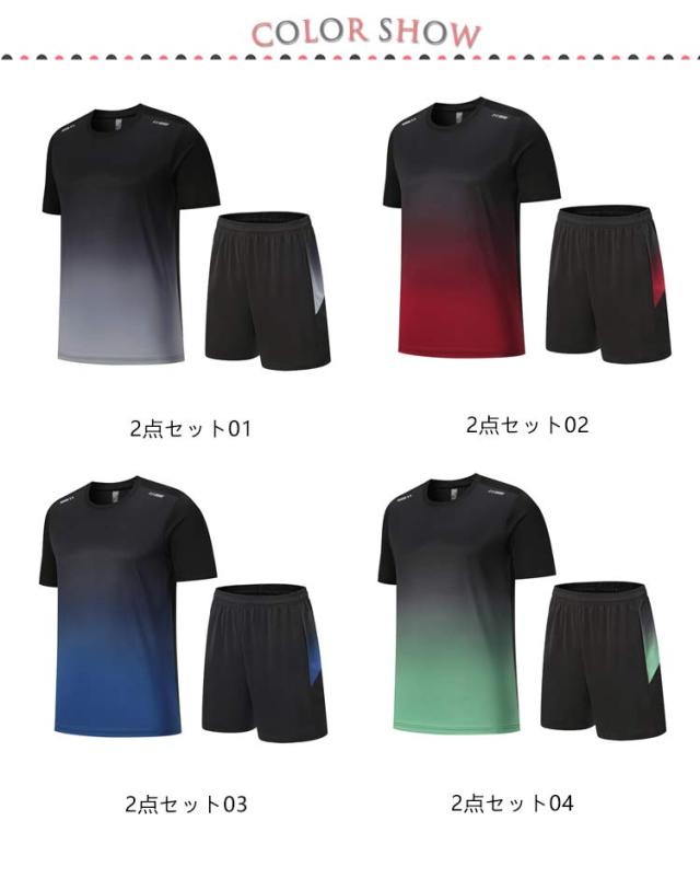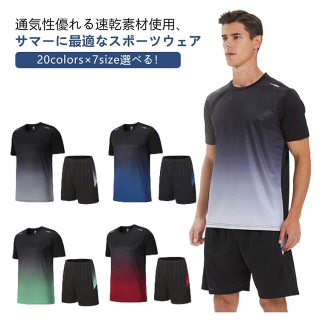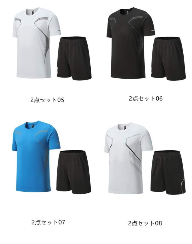 メンズ 夏 練習着 バドミントン 半袖tシャツ 速乾 大きいサイズ ジョギング バドミントン ランニングウェア バレーボール 2点セット 上下 通気性 テニス 卓球 サッカー ショートパンツ スポーツウェア ゲームシャツ