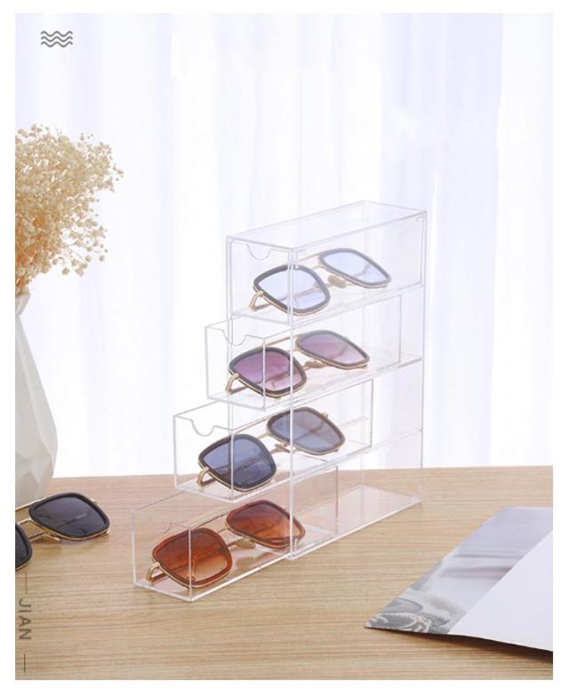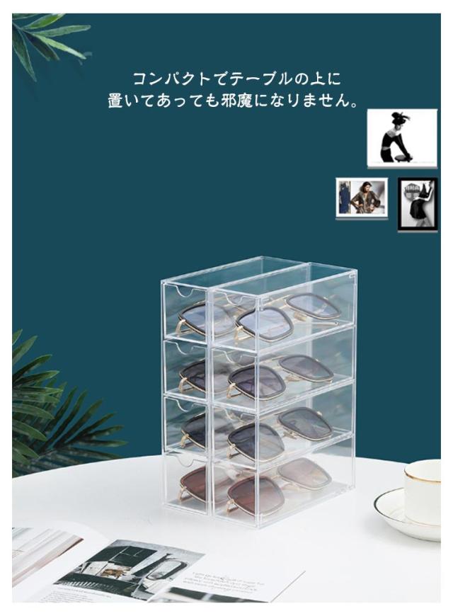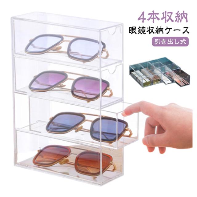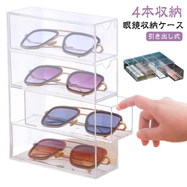 メガネケース メガネ収納 メガネ入れ メガネ 透明 サングラス収納 サングラスケース 収納 メガネスタンド サングラス 収納ボックス めがねケース 眼鏡ケース 老眼鏡 収納 小物入れ 眼鏡入れ メガネ めがね 4本収納 引き出し式