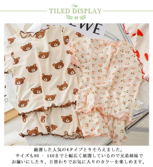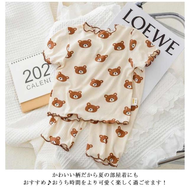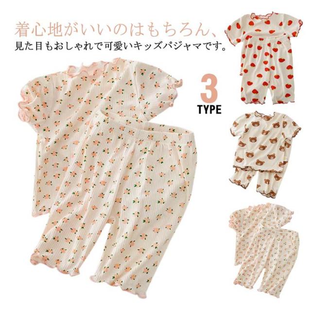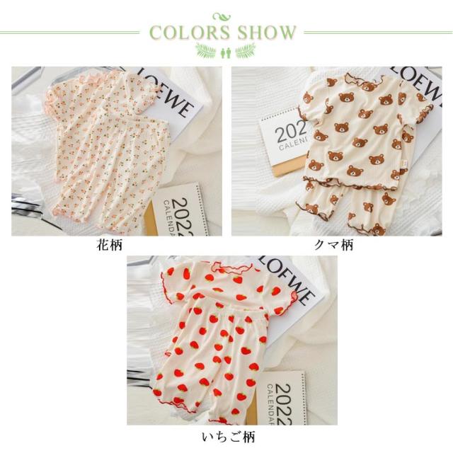 かわいい キッズ 半袖 パジャマ 子供服 半袖パジャマ パジャマ 寝巻 パジャマ 上下セット 袖口フリル セットアップ ワンマイルウエア ハーフパンツ いちご 花柄 クマ 薄手 女の子 部屋着 キッズパジャマ 子供パジャマ 子供 保育園 幼稚園
