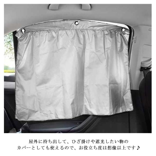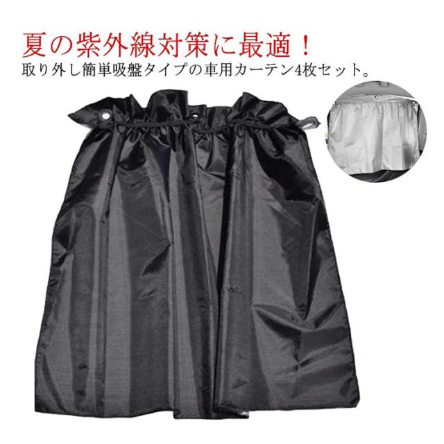 | 夏の紫外線対策に最適!取り外し簡単吸盤タイプの車用カーテン4枚セット。 吸盤で取付けるタイプで幅の調整も簡単に可能です。安全面ですべての窓は覆えませんが、支障のない後部座席などには大変強い味方! 容赦なく差し込む太陽光線のUV対策だけでなく、眩しさや熱さから同乗者を守るだけでなく、車内の目隠しとしても便利です。 屋外に持ち出して、ひざ掛けや遮光したい物のカバーとしても使えるので、お役立ち度は想像以上です♪ 車内の断熱にもなるので、エアコンの効きを良くし、車内を快適にします。 女性が気になる日焼け対策としても、駐車中の防犯・車上荒らし対策や、暑さ対策にもオススメ。 | |