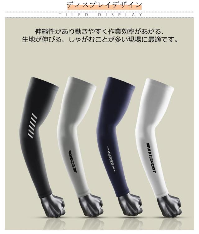 | 選べる4タイプ×4カラー!ひんやり爽やかな着心地の冷感アームカバー 伸縮性があり動きやすく作業効率があがる、生地が伸びる、しゃがむことが多い現場に最適です。 紫外線から腕を保護し、日焼けや紫外線による肌のダメージを軽減する役割があります。 汗を吸収し、蒸発させることで快適な状態を保ちます。スポーツや作業など活動中に役立ちます。肘からの汗を吸収することで、不快感を取り除き、肌荒れやかゆみの予防にもなります。 ストレスフリーなストレッチでアームカバーが腕から滑り落ちるのを防ぎます。適度な圧迫効果を持ち、筋肉の疲労を軽減し、回復を促進する効果があります。 また、薄手でバックに入れてもかさばらないので、持ち運ぶ機会が多い方でも簡単に持ち運びできます! | |