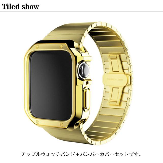 | アップルウォッチバンド+バンパーカバーセットです。【Apple Watch Series 8/7/6/5/4/3/SE/Ultra】【全機種対応!】 オフィスからプライベートまで幅広く活躍する、シンプルで高級感のあるデザイン。 場所を選ばず、どんなシーンでもアクセサリー感覚でお使いいただけます。 バンドとカバーは、軽量で錆に強いを持つステンレスを使用しており、非常に軽く長時間着けていても疲れません。 また、水や汗にも強く、どんなシーンでも安心してお使いいただけます。 プッシュ式バックルを採用し、ワンタッチで脱着も簡単です。 | |