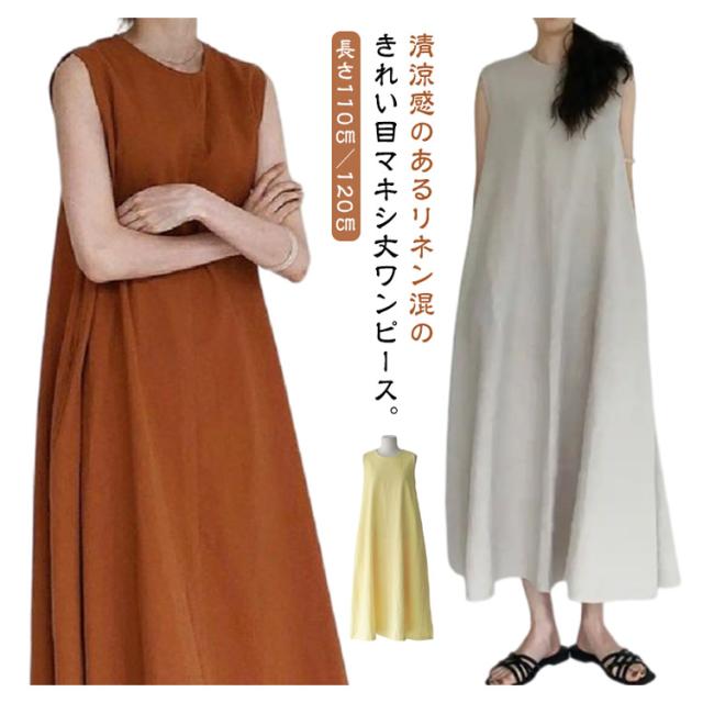 | 清涼感のあるリネン混のきれい目マキシ丈ワンピース。【長さ110cm/120cm】 程よく肉厚で透け感が気にならず、1枚でサラッと着用できるのも嬉しいポイント。 ノースリーブで華奢見え効果も期待できます ストンと落ちるシルエットが美しく、コーディネートを洗練された印象に導きます。 1枚でさらりと着たり、カーディガンを肩に巻いたりして着用がオススメ | |