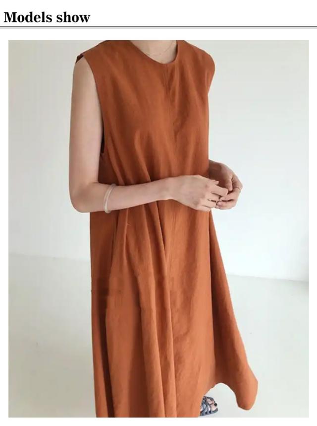 ノースリーブ ロングワンピース リネンノースリーブワンピース マキシ丈 袖なし 綿麻ワンピース ワンピース マキシワンピース 綿麻 タンクトップ リネン ナチュラル 夏 レディース リネンノースリーブワンピース ゆったり 体型カバー ブラウン