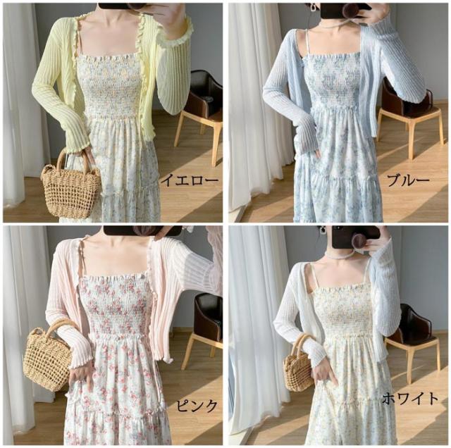 日焼け止めカーディガン:ホワイト|イエロー|ブルー|ピンク 別途+2750円