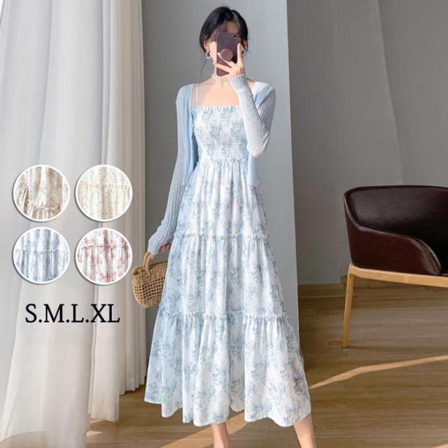 夏ワンピース キャミソールワンピース 花柄 フリル 女性らしさ溢れる 夏ワンピ ビーチ 旅行 海デート リゾート 大人可愛 dd367c0cyxq