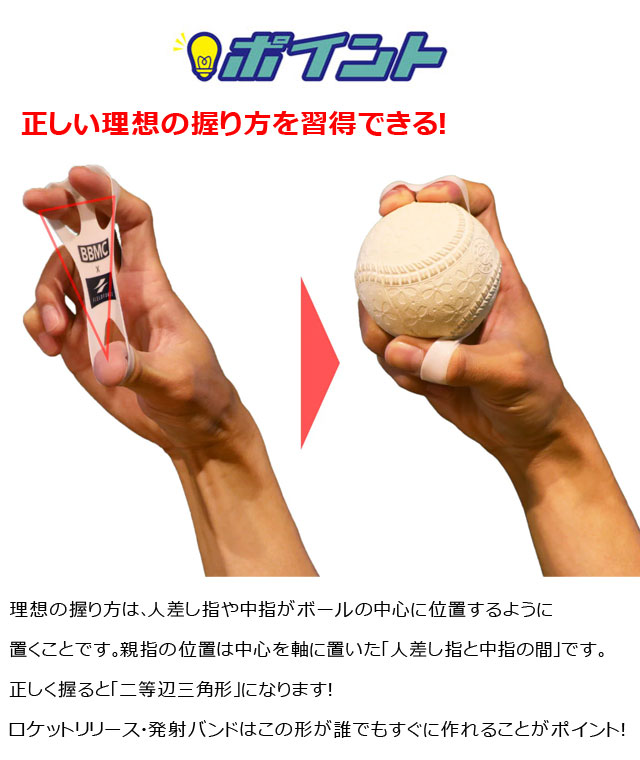 『ロケットリリース・発射バンド』は、野球動作改善専門のプロ施設で生まれた、投球動作中のリリース動作改善のためのアイテムです。