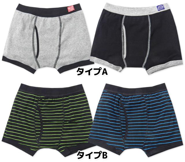 【送料無料】2枚組セット 男児 キッズ ジュニア ボクサー ブリーフ 前開き 本体綿100% ネームタグ 肌着 下着 インナー パンツ 130cm 140cm 150cm 160cm yg-2530【メール便対応】