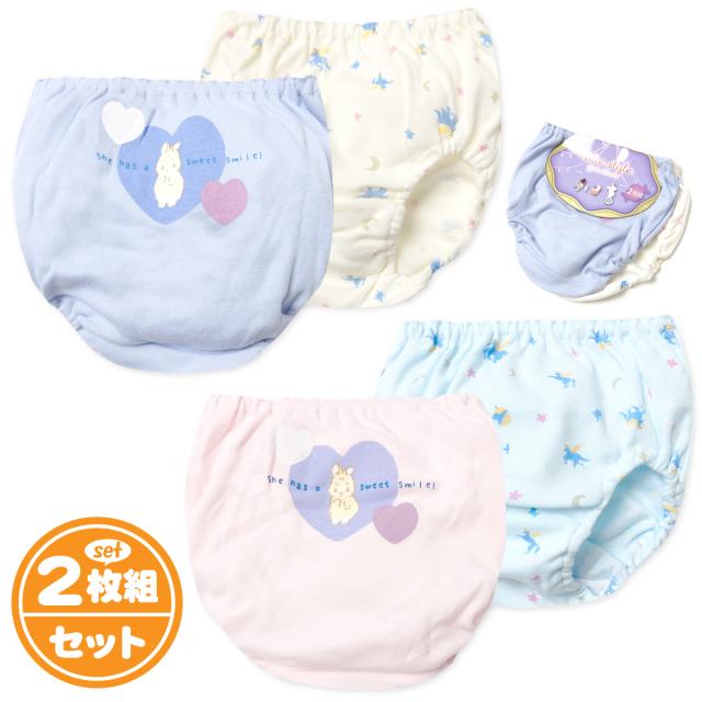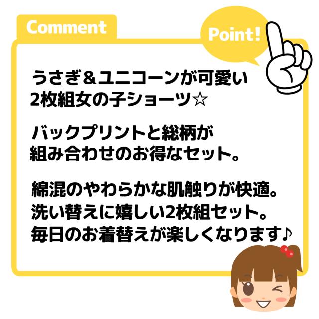 【送料無料】2枚組セット 女児 キッズ ショーツ 綿混 うさぎ ユニコーン バックプリント 総柄 肌着 下着 インナー 子供 女の子 110cm 120cm 130cm yg-2506【メール便対応】