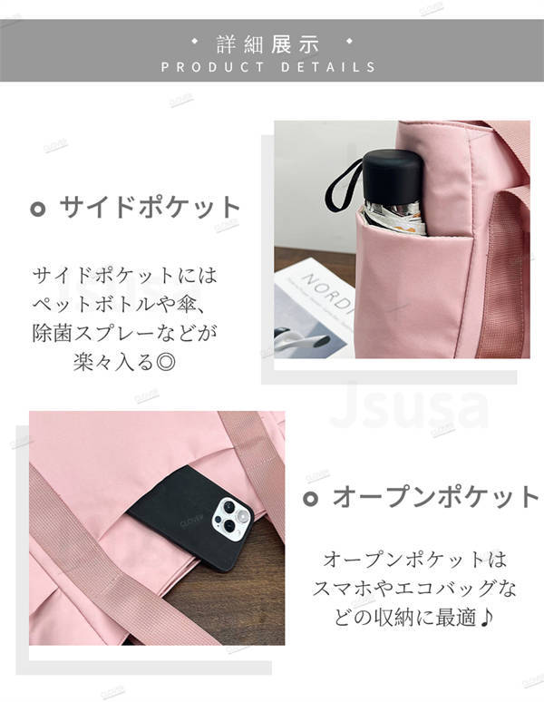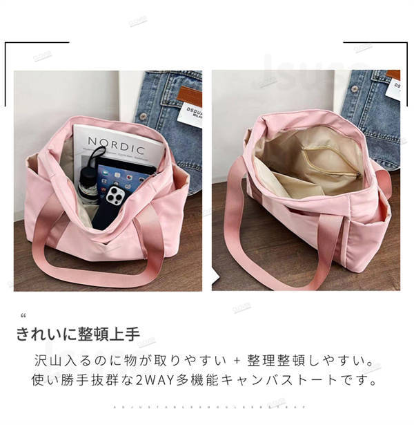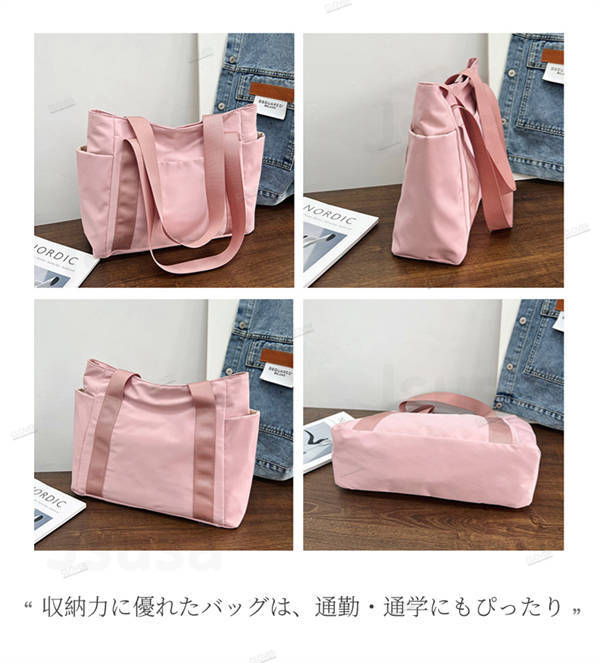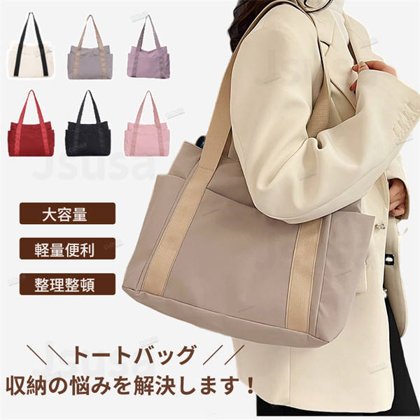 トートバッグ レディース 多機能 小さめ ファスナー付き ポケット バッグ シンプル おしゃれ お買い物バック サイドポケット付き 収納バッグ 持ち運び便利 肩掛け 旅行 仕事用 軽い 軽量 通勤通学大容量