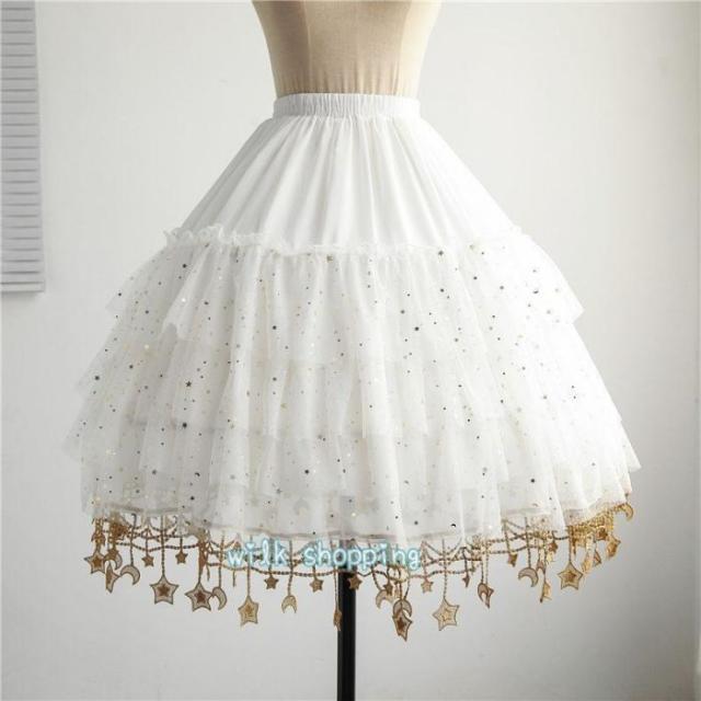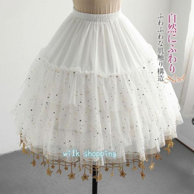 パニエ 星柄飾り キラキラ ボリュームアップ アンダースカート インナー スカート ワンピース ロリータ ゴージャス 文化祭