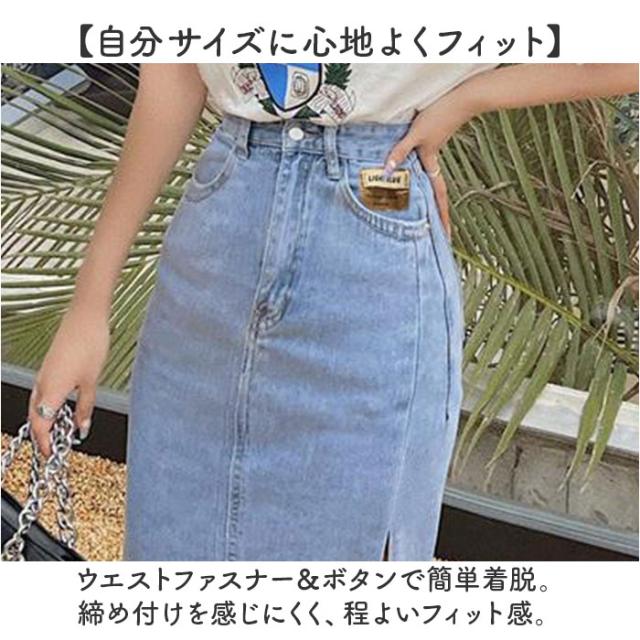 デニムスカート タイトスカート スリット レディース 通販 ロングスカート ロング丈スカート レディーススカート スカート ロンスカ タイト デニム 長め ボタン ロング ロング丈