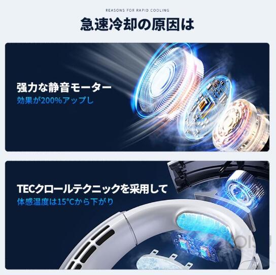 両手も自由になるため、外出や通勤、通学中、スポーツ観戦、キャンプ、山登り、ウォーキング、散歩、遊園地、ドライブ、屋外作業、図書館料理中など様々なシーンで涼しく過ごせます。