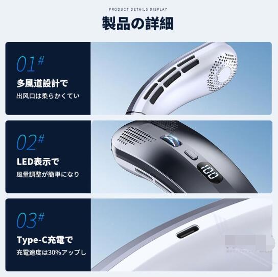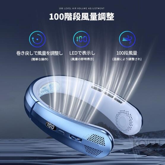 首掛け扇風機 ネッククーラー 100段階風量調節 軽量 静音 ネックファン 首かけ 扇風機 冷感グッズ 冷却 クール 携帯扇風機 USB充電 大風量 LED表示