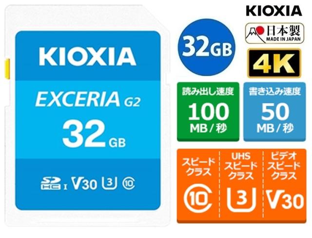 32GB キオクシア SDHCカード 32GB Class10 UHS-I U3 V30 4K対応 SDHCメモリカード 100MB/s KIOXIA EXCERIA G2 KSDU-B032GBK 日本製 国内正規品