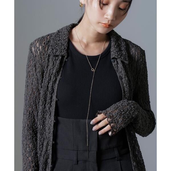 大人っぽい印象の華奢なチェーンを使用したラリエットネックレス。チェーンを通す2つの小さなループがさりげないアクセント。