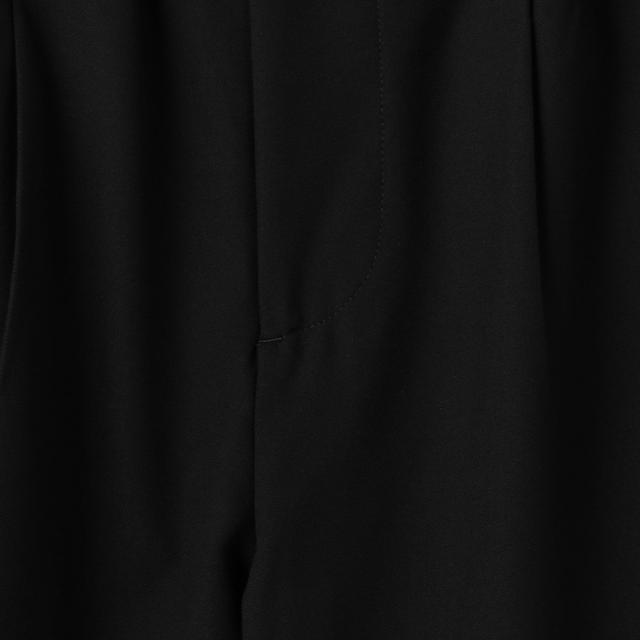 タックを入れて、腰回り〜渡り幅〜ヒップにゆとりを持たせ、裾にかけてテーパードさせることで、品のあるすっきり見えるシルエットです。