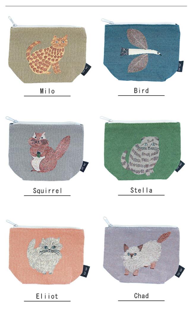松尾ミユキ ポーチ コスメポーチ ミニポーチ 小物入れ バッグ 収納ケース 猫 ねこ ネコ cat 鳥 バード リス