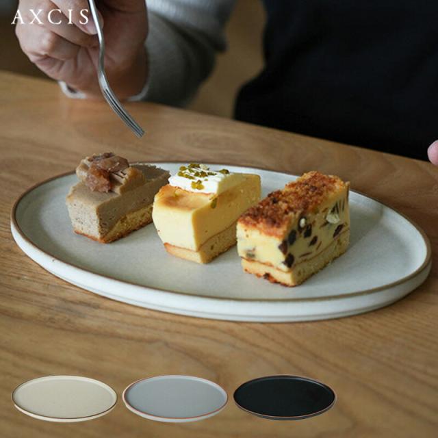 オーバル 丸皿 皿 おしゃれ プレート お皿 Mサイズ 24cm マット ブラック ホワイト グレー 黒 白 ナチュラル アクシス AXCIS 陶器 日本製 器 取り皿 食器 お食い初め モダン ピュア フラットプレートオーバル 無地 食器 電子レンジ可 食洗機対応