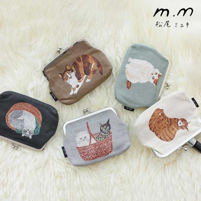 松尾ミユキ パース ポーチ がま口 がまぐち 財布 パスケース 小銭入れ ミニポーチ トラベルポーチ コスメポーチ 小物入れ バッグ 収納ケース 猫 小ぶり 自立 マチ付き ジャガード ねこ cat ネコ 北欧