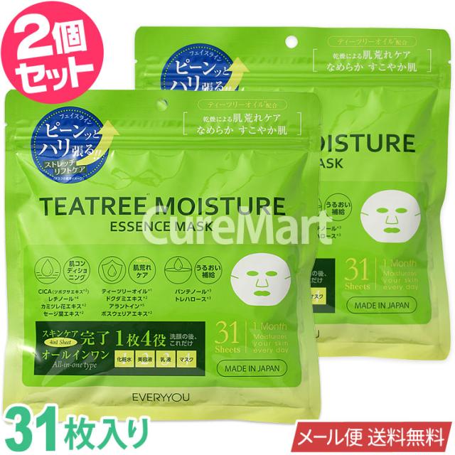 EVERYYOU TEATREE MOISTURE フェイシャルマスク 大容量 31枚入◆2個セット 日本製 31P メール便送料無料 ティーツリー ティートリー フェイスマスク シートマスク 美容 パック エブリユー ドウシシャ