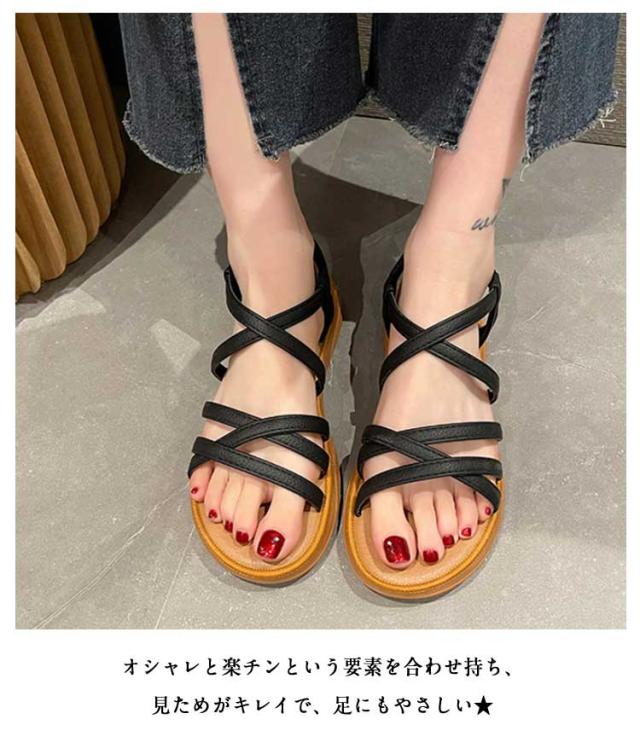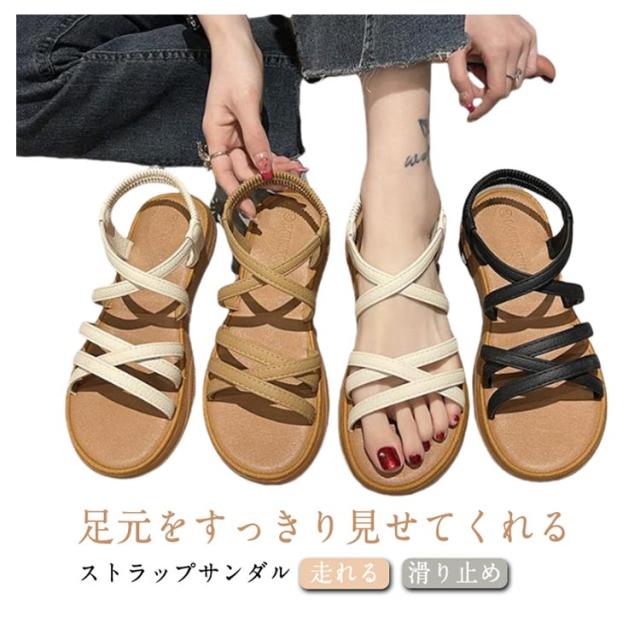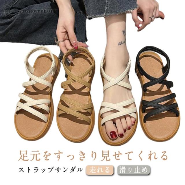 ストラップサンダル レディース フラットシューズ スポーツサンダル スポサン 細ストラップ ぺたんこ きれいめ 歩きやすい 走れる 軽量 楽 カジュアル 海 夏 滑り止め 大人女性 かわいい 通勤 通学 シンプル ギフト プレゼント 送料無料