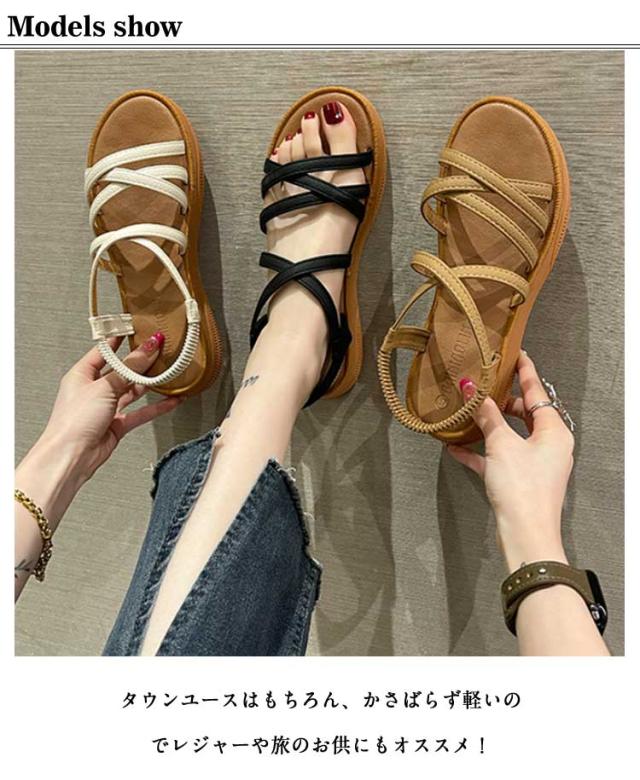 | 足元をすっきり見せてくれるストラップサンダル オシャレと楽チンという要素を合わせ持ち、見ためがキレイで、足にもやさしい★ 後ろゴムのデザイン、履きやすい! フィット感抜群◎軽い履き心地で夏のアウトドアにもおすすめ。 タウンユースはもちろん、かさばらず軽いのでレジャーや旅のお供にもオススメ! | |