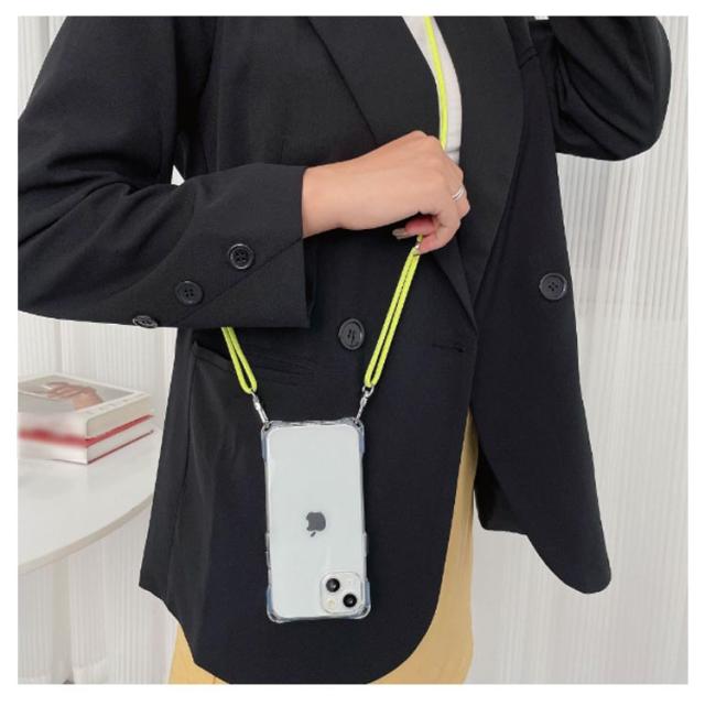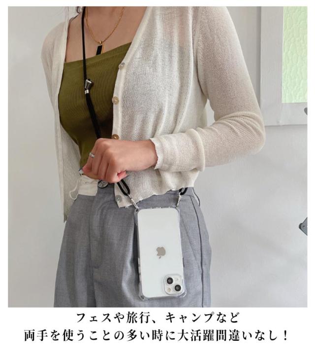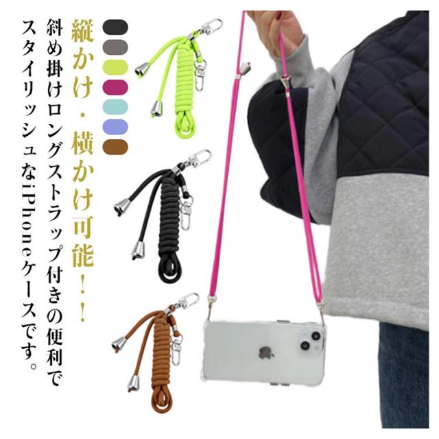 | 縦かけ・横かけ可能!!斜め掛けロングストラップ付きの便利でスタイリッシュなiPhoneケースです。 iPhoneのデザインをいかすクリアケースに四つ角のストラップホールがポイント。 天然ゴム(TPU)素材のケースは、柔らかく優しい手触りで、しっかりとスマホ本体を保護します。 どんなスタイルにも合う、シンプルでスタイリッシュな見た目で、コーディネートの一部として映える事間違いなし。フェスや旅行、キャンプなど両手を使うことの多い時に大活躍間違いなし! お好みで首掛け、斜め掛け、両用OK。男女問わずお使いいただけます。 | |