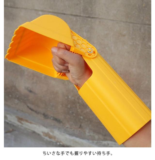 | しっかり丈夫な砂場おもちゃシャベルです。 ちいさな手でも握りやすい持ち手。 砂をすくう部分は、どんなすくい方をしても、砂が入る工夫がされています。 柔らかいプラスチックなのに、割れにくくなっています。 取っ手も柔らかいので、子どもの手を傷つけにくいのが特長です。 | |