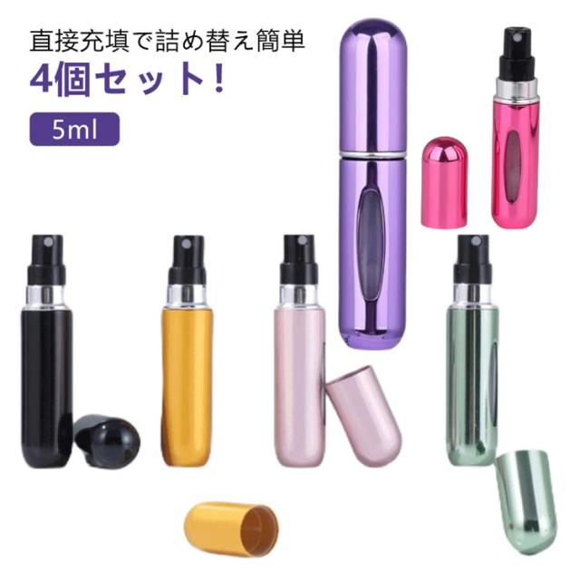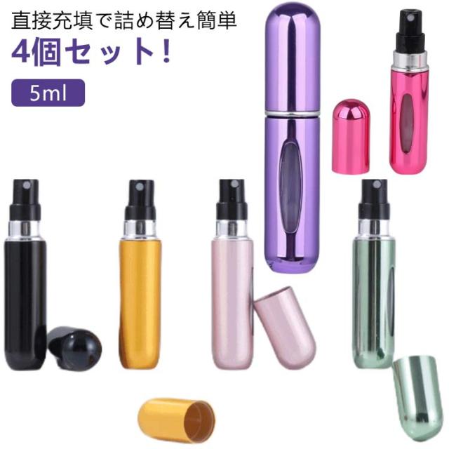 香水 アトマイザー 5ml 4個入 クイックチャージ式 香水瓶 携帯 持ち運び 底部充填 クイックチャージ香水アトマイザーボトル クイックアトマイザー コンパクト スプレー 携帯用 除菌 おしゃれ かわいい ボトル 高級感 コンパクト クイックアトマイザー 旅行