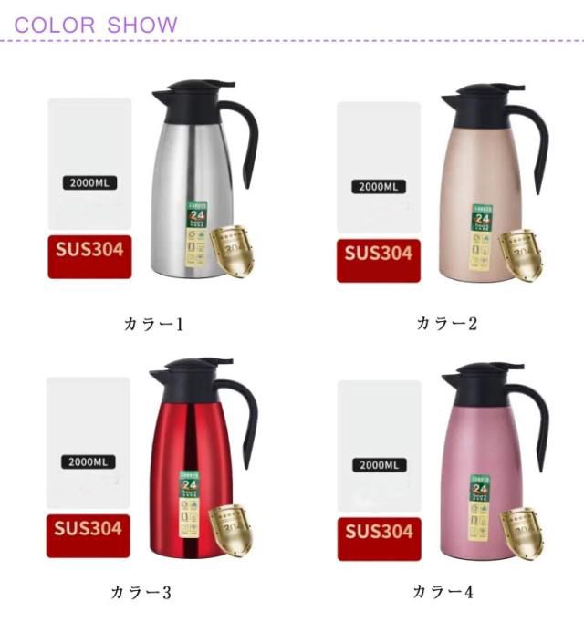 | 大容量2000ml!ステンレス真空断熱構造で保温と保冷に優れています。 本体は衝撃に強い304ステンレス製。 レバーを押すだけでスムーズに注げます。 電気を使用しないで保温保冷するので、とってもエコ。 コンセント要らずなので、好きな場所で使えます。 持ち運びと注ぎに便利な大きなハンドル。 食卓、リビング、在宅ワーク、オフィス、レストラン、食堂、喫茶店、旅館、民宿、ホテルなどに好適品。 | |