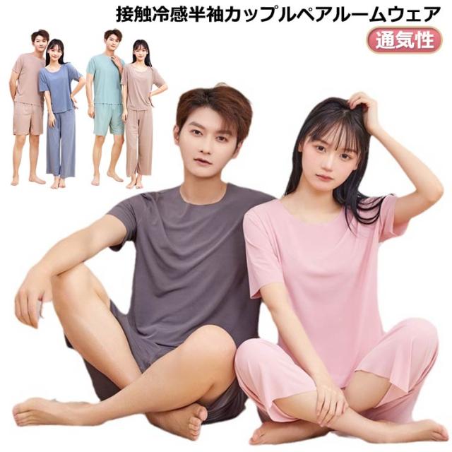 カップル ペア ルームウェア 半袖 夏 ルームウェア夏 さらてろ 涼感 ルームウェア 上下セット レディース 半袖 パジャマ カップル ペア 部屋着 メンズ 女性 春 夏 春夏 冷感 薄手 涼しい ひんやり 快適 セットアップ かわいい 寝間着 寝巻き ナイトウェア 楽ちん