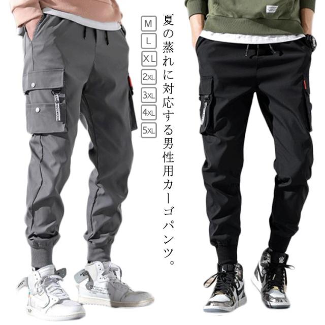 カーゴパンツ メンズ 夏 薄手 接触冷感 ひんやり 涼しい 冷感パンツ ロングパンツ ポケット付き ジョガーパンツ イージーパンツ カジュアルパンツ スリム 作業着 美脚 ウエストゴム カジュアル 無地 おしゃれ 大きいサイズ 送料無料 M-5XL