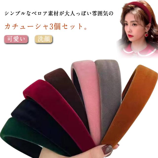 3個セット ベロア カチューシャ レディース 痛くないカチューシャ ベルベット ヘアアクセサリー シンプル 無地 おしゃれ レトロ 秋 冬 かわいい 大人 上品 高級 可愛い ヘアバンド 小顔 洗顔 通勤 無地 白髪隠し 薄毛隠し 結婚式 パーティー プレゼント ギフト 送料無料