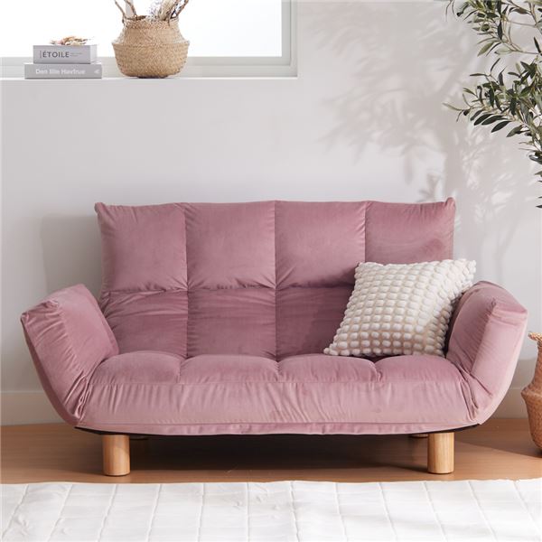 商品仕様: ふかふか カウチソファ ベロアピンク 肘付 コンパクト 脚付 リクライニング フロアソファ ローソファ LIRAKU