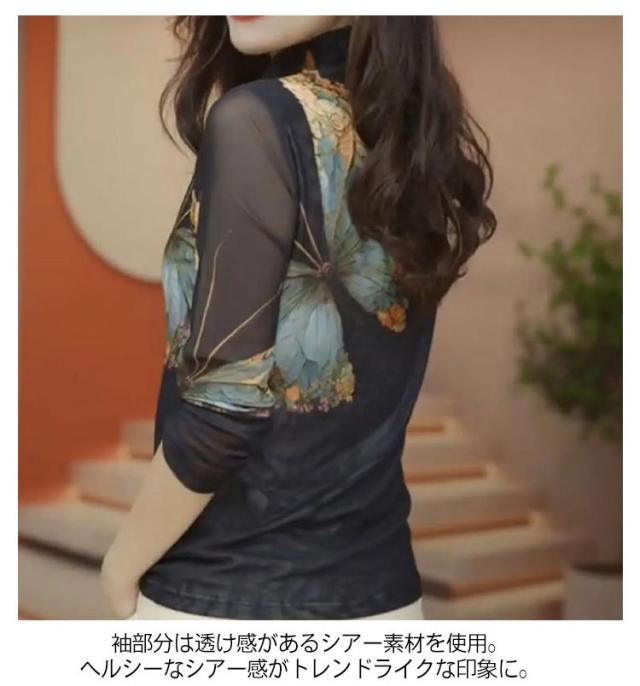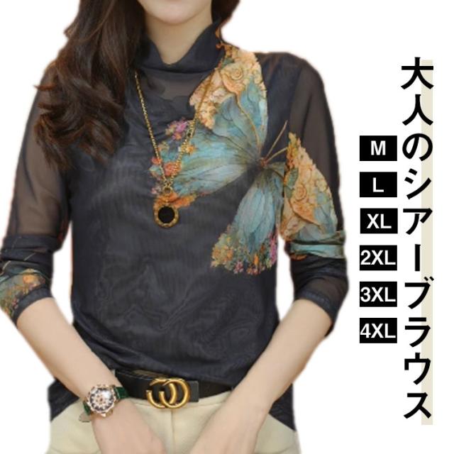 ブラウス トップス 長袖 大人 蝶 透け感 ハイネック レディース 薄手 女性 透け感 シアーシャツ シアーブラウス きれいめ 春コーデ シフォンブラウス 大きいサイズ おしゃれ 韓国風 プレゼント ギフト 送料無料 40代 30代