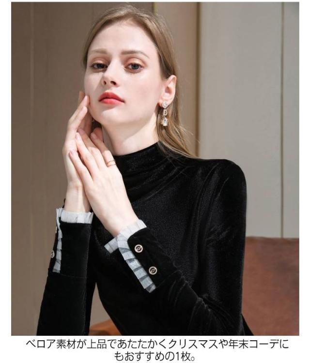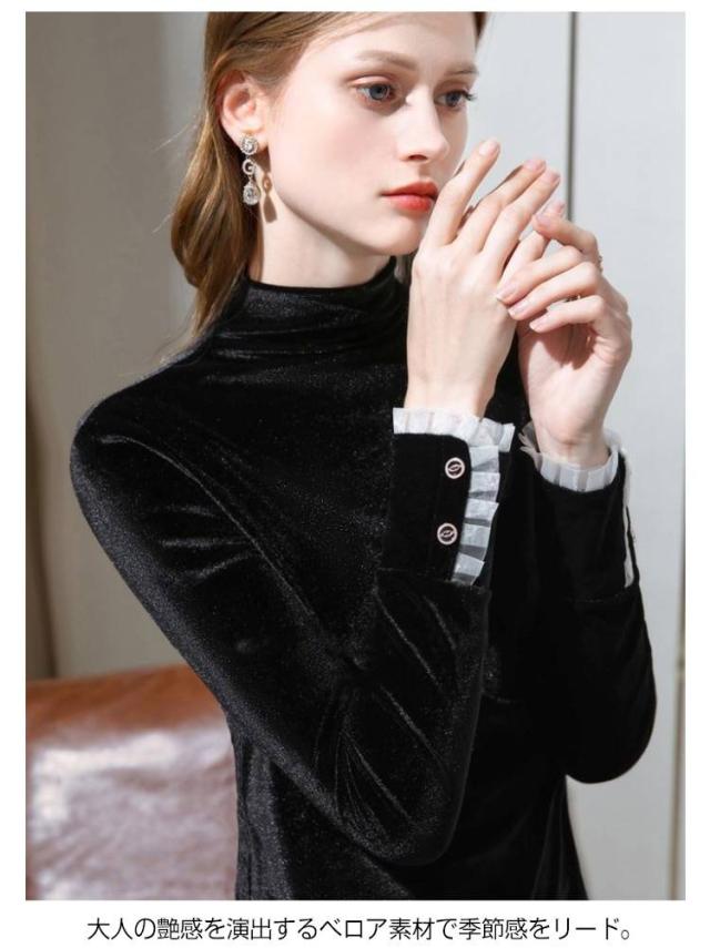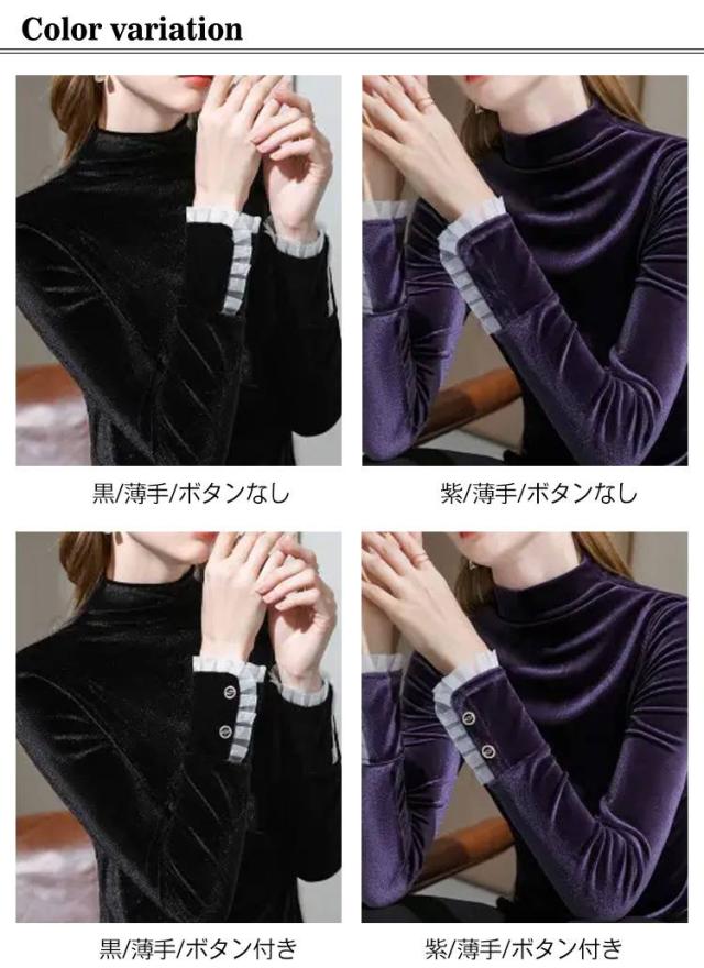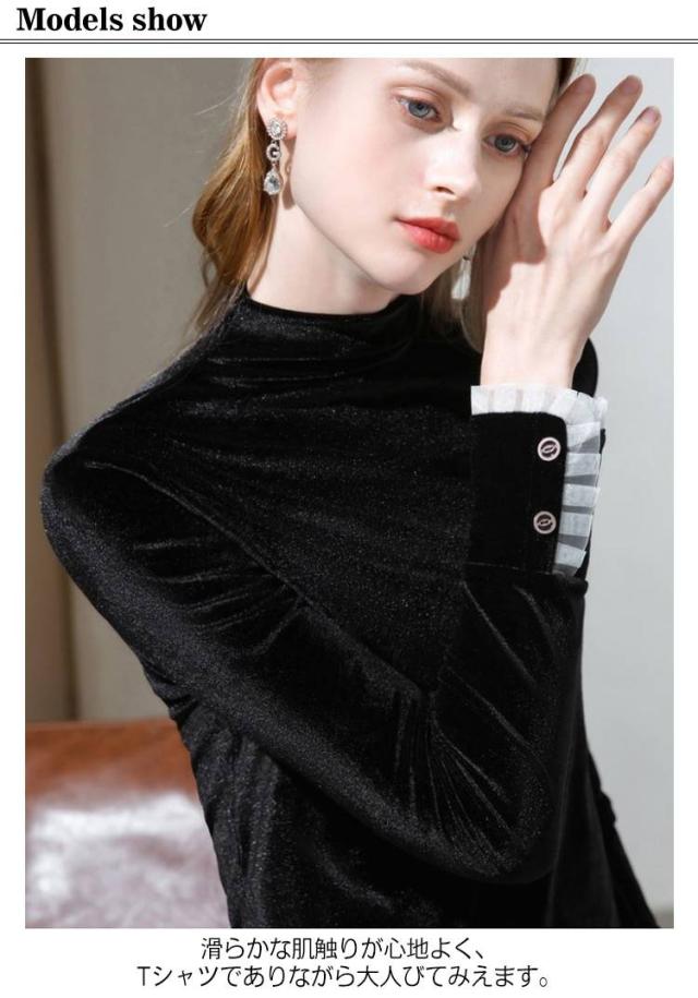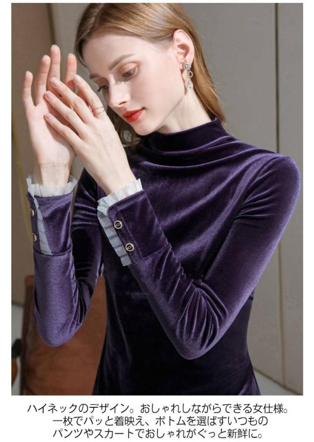 春秋 ベロア ハイネック カットソー 長袖 レディース トップス プルオーバー きれいめ 無地 冬 tシャツ ハイネック 暖かい ベルベット シンプル 大きいサイズ エレガント オフィス 通勤 大人 女性 光沢 インナー レイヤード