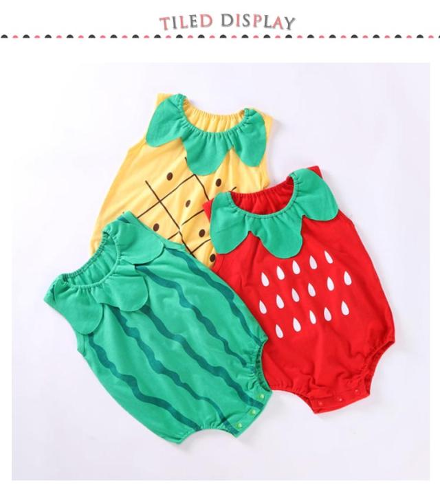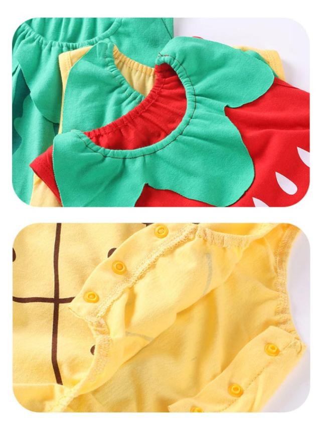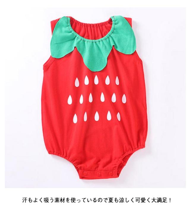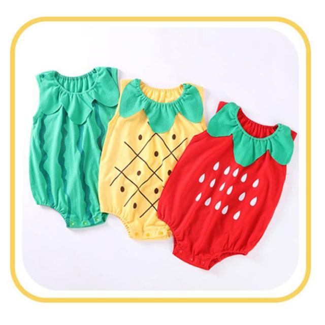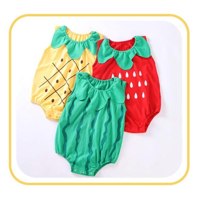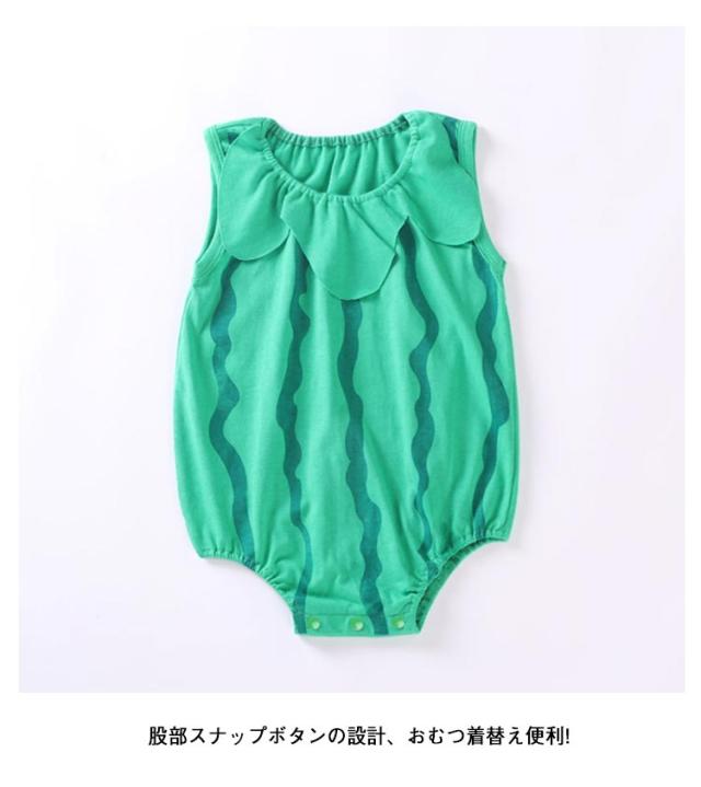 | 目を引きつけるフルーツコスチュームロンパース! 柔らかいコットン生地は快適で通気性があります。 汗もよく吸う素材を使っているので夏も涼しく可愛く大満足! 股部スナップボタンの設計、おむつ着替え便利! | |