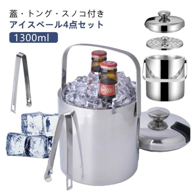 アイスペール ワインクーラー 真空断熱 小型 1.3L スノコ付き 4点セット ステンレス 魔法瓶 二重構造 セット 保冷 蓋 アイスペール 1.3リットル 溶けない 氷 おしゃれ コンパクト アイスバケット 持ちやすい ウイスキー