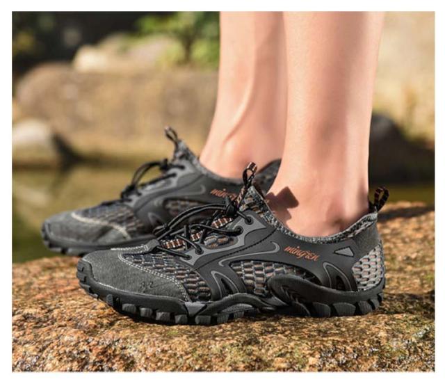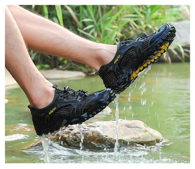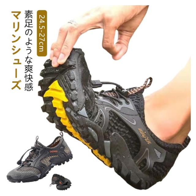 | ケガ予防・水陸両用・通気速乾 素足のような爽快感 マリンシューズ 24.5-27cm 水辺のマストアイテム! 快適さを上げるマリンシューズが新登場!! 普通のシューズと比べて滑りにくさや速乾性に優れて、川Pや海など水辺でのアクティビティを快適に楽しめる水陸両用シューズです。 通気性に優れた超軽量の伸縮性のある軽量ファブリックで、速い排水性とクロス換気を実現し、優れた柔軟性と快適さを提供します。 簡単なオンとオフ:かかとの引きタップは素早く簡単に入ることを可能にして、あなたの足をしたたりから守ります。 弾性ストラップ:足の幅に合わせてすぐに靴の弾性を調整し、あなたの靴を結ぶの煩わしさを避けます。 容易に着脱が可能:弾力がある紐とアジャスター付き足の快適さに合わせて簡単に調節できます。 <お勧めポイント> ●履き心地のよいつくり:折りたためるほど柔軟な素材を使用 ●ソールは滑りにくいラバー素材。石や先の鋭い物から足を保護します。 ●濡れた岩場でも優れたグリップ力 ●ソールにある溝から水が排出され ●ぬかるんだ地面でも脅威的なグリップ力を発揮 ●水抜きされやすく、速乾性に秀でた独自メッシュ素材を採用 ●2種類のメッシュを重ねているため砂利や小石などの異物が入りにくい | |