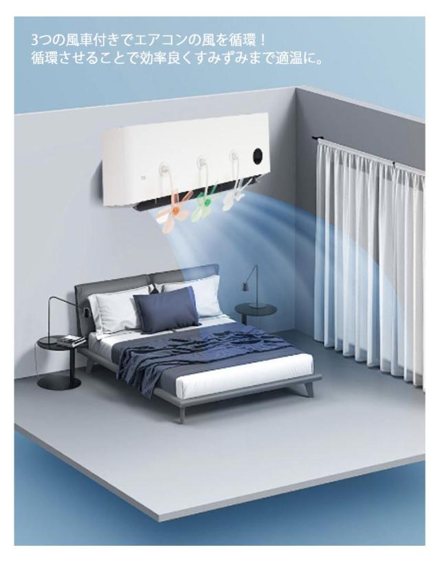 | 冷房にも暖房にも使用可能!3つのファンが付いているエアコン風よけカバー。 3つの風車付きでエアコンの風を循環!循環させることで効率良くすみずみまで適温に。 簡単取付、空気循環を良くし電気代節約。ほとんどの家庭用・共用エアコン機種に対応! 不快な直撃風をブロック!直接風を除け、大切な人を守ってくれます。 工事不要で、上掛式で取り付け簡単。釘とかを使わずに壁に傷つけずに済むのです。 | |