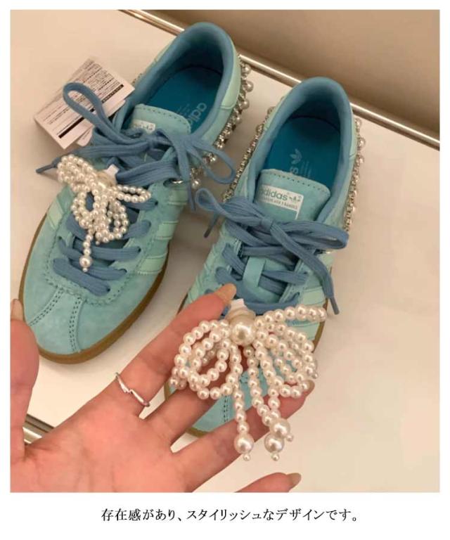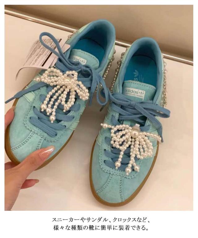 真珠 シューピアス シューピアス シューチャーム パール 靴ひも レディース 靴 リボン シューパーツ シューズアクセサリー スニーカーデコ 女性 おしゃれ 韓国風 ファッション小物 靴飾り スニーカーアクセサリー 蝶結び 可愛い
