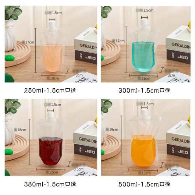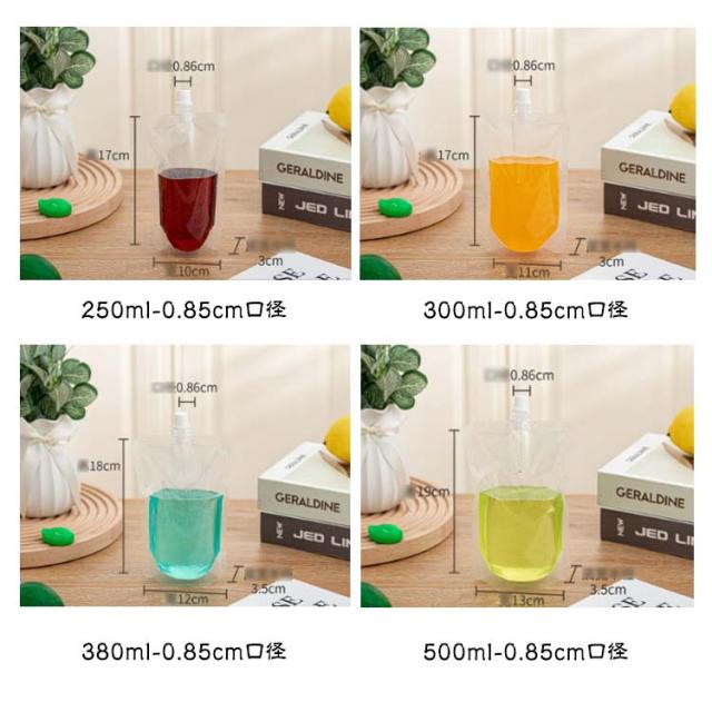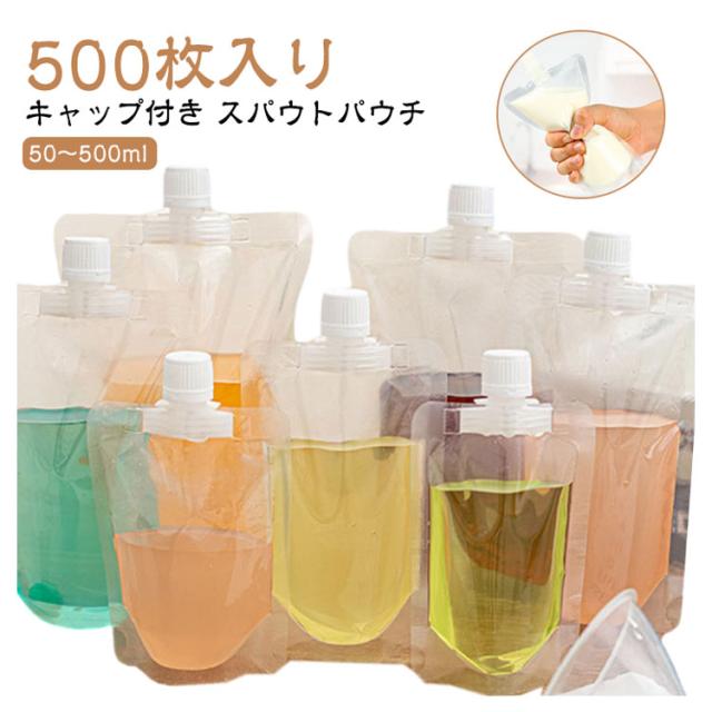 150ml 250ml 300ml 500枚入り 200ml 380ml 100ml 透明 保存容器 500m スパウトパウチ 注ぎ口付きパック テイクアウト用 スタンドパック ドリンクパック 耐高温 冷凍 詰め替え 蓋付 飲み物用 ジュースパック スパウト 自立式 パウチ キャップ付き