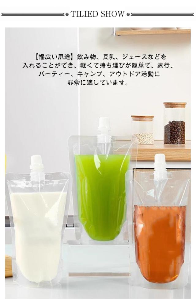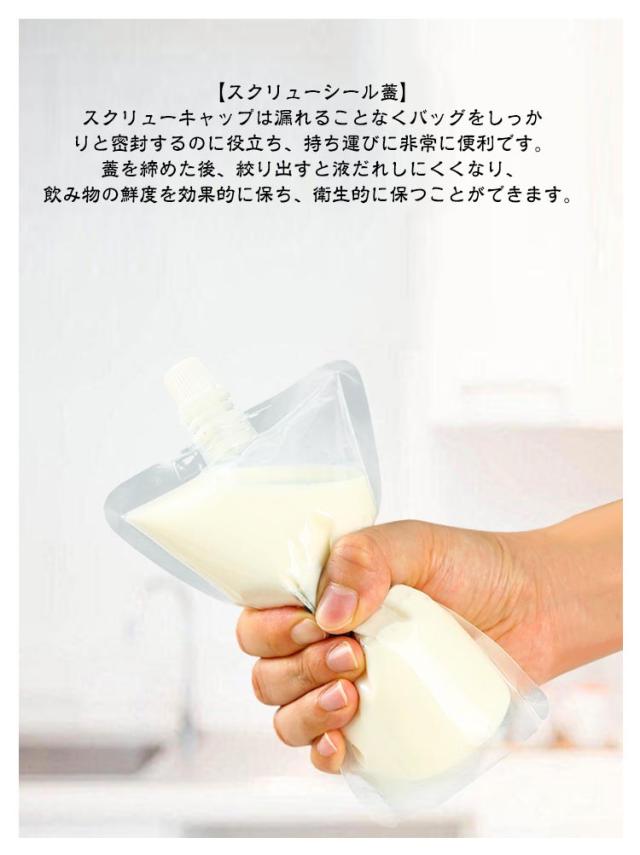 | 【500枚入り】【スパウトパウチ】【キャップ付き】【50〜500ml】 【安全な素材】食品グレードのPETおよびPE素材で作られており、健康的で安全、壊れにくく、耐久性があります。隠れたペットボトルは折りたたんで簡単に保管できます。 スクリューキャップはバッグをしっかりと密封し、漏れを防ぐので、持ち運びが簡単です。 【自立底部】正確な湾曲したエッジデザインにより、傷を効果的に防ぎます。 ジュースバッグの底部は特別な独立したデザインを採用しており、耐荷重能力を効果的に高め、立体的なスペースをとらないため、テーブルやスタンドに飲み物を置くことができます。 【スクリューシール蓋】スクリューキャップは漏れることなくバッグをしっかりと密封するのに役立ち、持ち運びに非常に便利です。 蓋を締めた後、絞り出すと液だれしにくくなり、飲み物の鮮度を効果的に保ち、衛生的に保つことができます。 【幅広い用途】飲み物、豆乳、ジュースなどを入れることができ、軽くて持ち運びが簡単で、旅行、パーティー、キャンプ、アウトドア活動に非常に適しています。 | |