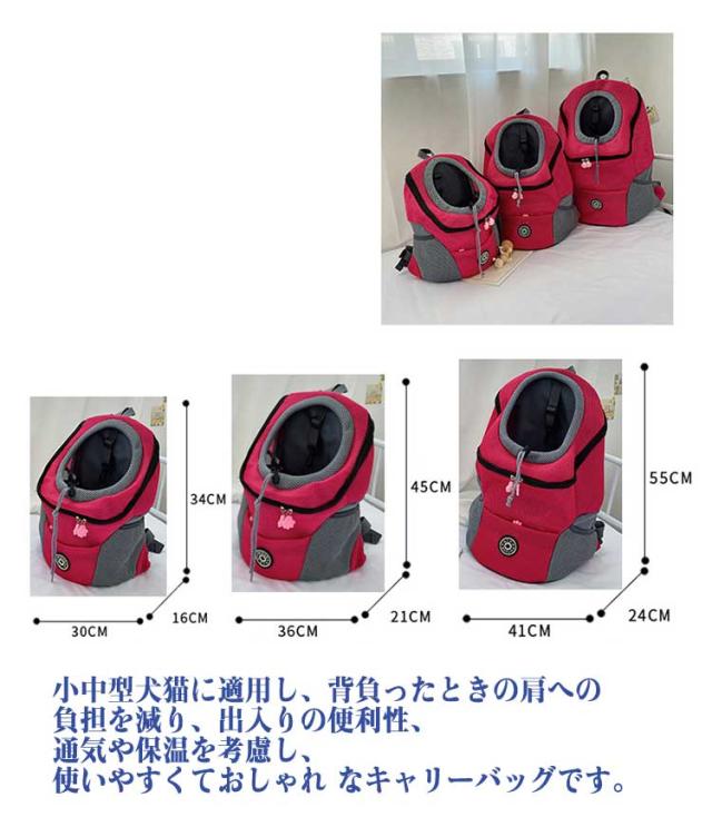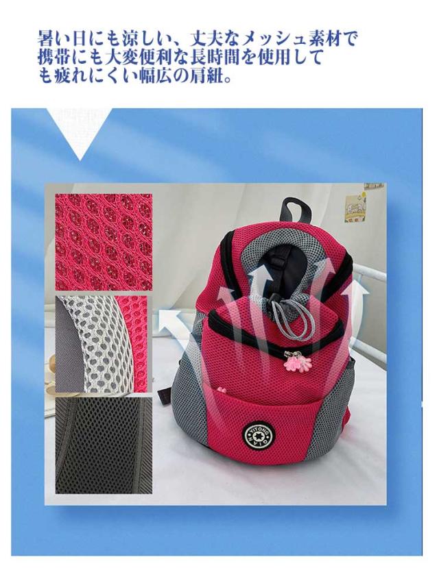| いつでもどこでもペットと一緒♪抱っこだけでなく、おんぶや肩掛けといったリュックの利用も可能です。 飛び出し防止フック付きなので首輪につなげば安心です。首輪がない場合、メッシュネットさえしめれば、飛び出しを防止することもできます。 暑い日にも涼しい、丈夫なメッシュ素材で 携帯にも大変便利な長時間を使用しても疲れにくい幅広の肩紐。 首元はサイズに合わせて 調節できるストッパー付き! お出かけする際財布・小銭・スマホ・鍵などの貴重品はファスナー付きポケットに収納すればより安心できます。 小中型犬猫に適用し、背負ったときの肩への負担を減り、出入りの便利性、通気や保温を考慮し、使いやすくておしゃれ なキャリーバッグです。 お好きなカラーでお散歩♪ | |