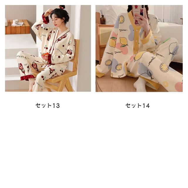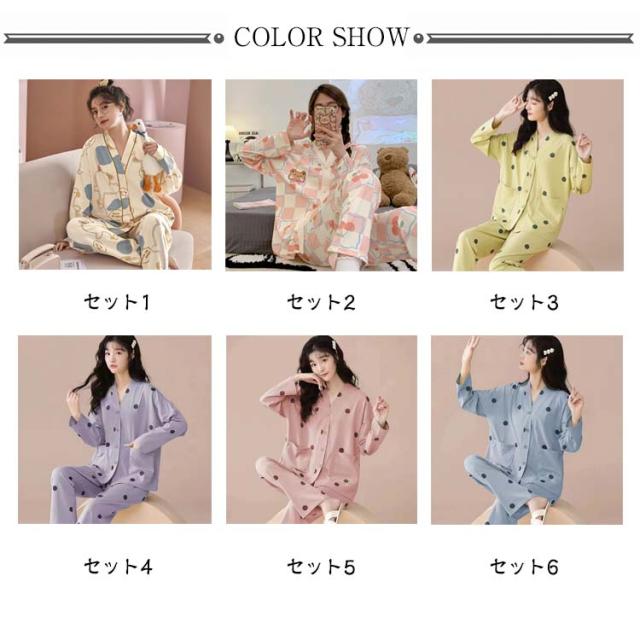 | 【パジャマ・上下セット】【前開き】【全14色】 セット内容:長袖前開きトップス、ロングパンツ 上下ともかわいい総柄がプリントされておうちでのリラックスタイムも楽しい気分で過ごせそう♪ パジャマはもちろん、カジュアルなルームウエアで、お部屋でのくつろぎ時間を快適にお過ごしください。 伸縮性のあるウエストゴムで、締め付けず快適な穿き心地です。 前開き前ボタンタイプで着やすいので、授乳や入院などにもおすすめ。 ポケットがひとつ付いていて、スマホなど入れるのに便利です。 | |